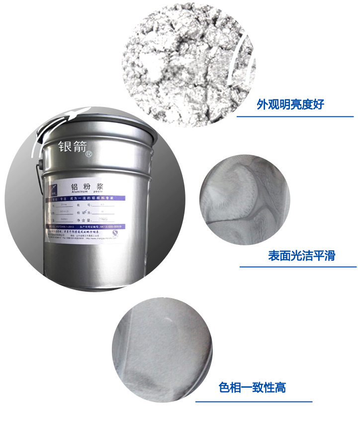 銀箭鋁顏料采用低速研磨,嚴格控制工藝,把機械能降到低,生產品質優良,應用廣泛的鋁顏料。